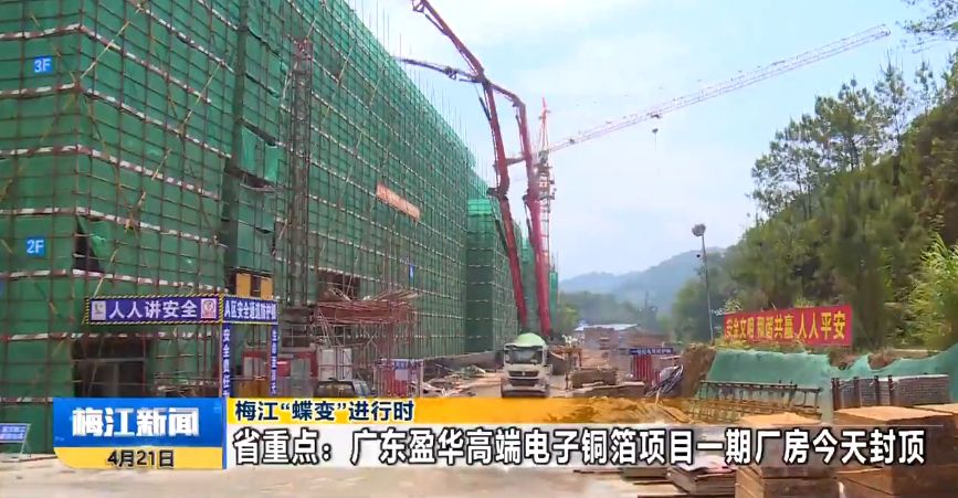 梅江“蝶變”進(jìn)行時 省重點(diǎn):廣東盈華高端電子銅箔項目一期廠房封頂