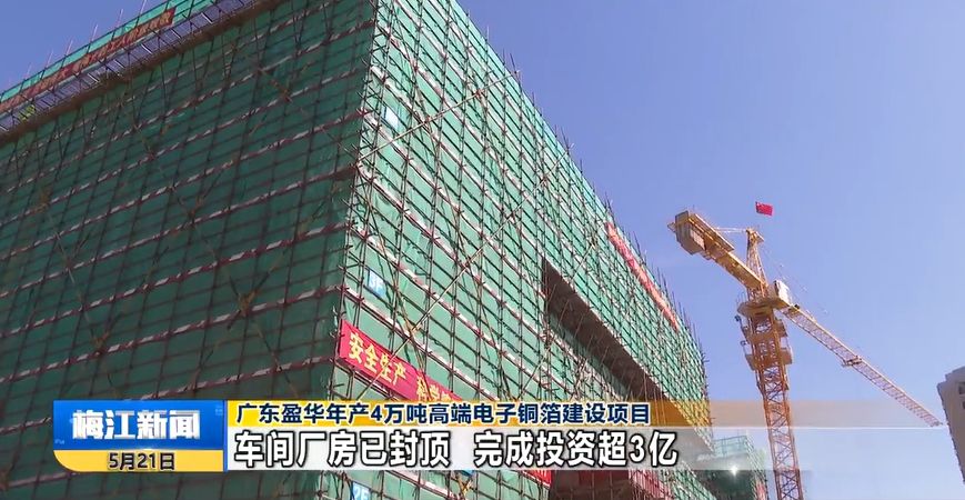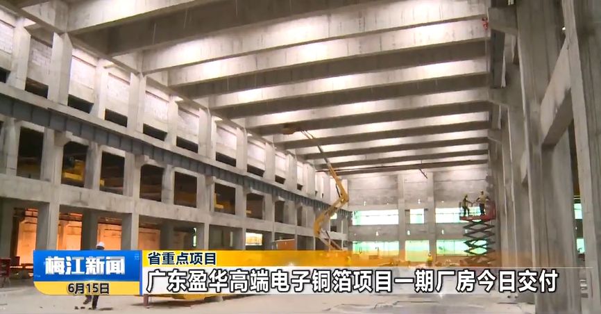廣東盈華年產(chǎn)4萬噸高端電子銅箔建設(shè)項目 車間廠房已封頂 完成投資超3億