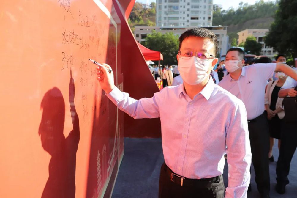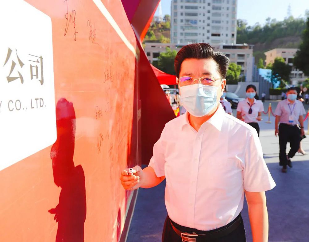 梅州市委常委、副市長、梅江區委書記陳金鑾代表市委市政府致辭,向廣東盈華電子科技有限公司高端銅箔項目一期投產暨二期動工表示熱烈的祝賀。他表示,盈華高端銅箔項目是我市重點“打糧食”項目之一,自項目啟動以來,拿地即動工,一年即投產,跑出了重點項目落地的加速度,這是貫徹落實習近平總書記“疫情要防住,經濟要穩住,發展要安全”重要指示要求的生動實踐。項目的投產將進一步壯大梅江信息產業集群,助力梅州加快打造“中國銅箔之都”。他強調,市直有關部門要用心用情優服務,突出抓好項目審批全面提速、惠企政策精準落地、營商環境持續優化;深化“暖企”行動,為企業發展和項目建設“鋪路架橋”,用政府的誠信贏取企業家的信心、用干部的“辛苦指數”換取企業的“發展指數”。希望盈華科技堅定發展信心,爭取早日實現一期滿產滿銷及加快二期建成投產,為推動梅州蘇區加快振興、共同富裕貢獻力量。