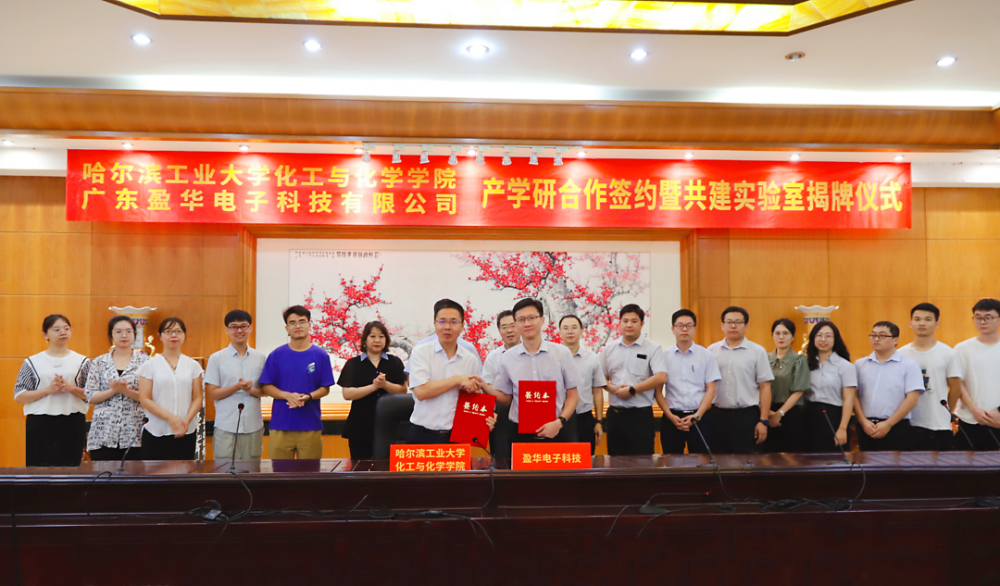 2022年8月17日,廣東盈華電子科技有限公司與哈爾濱工業(yè)大學(xué)化工與化學(xué)學(xué)院在梅州簽署產(chǎn)學(xué)研合作協(xié)議,雙方就高性能電解銅箔制造復(fù)合添加劑的研發(fā)和產(chǎn)業(yè)化展開合作,建立互相支持、互相依托、共同發(fā)展的產(chǎn)學(xué)研合作關(guān)系,并舉行高性能銅箔聯(lián)合實驗室揭牌儀式。哈爾濱工業(yè)大學(xué)化工與化學(xué)學(xué)院副院長杜春雨教授,化工與化學(xué)學(xué)院安茂忠教授,盈華科技總經(jīng)理李遠(yuǎn)泰等領(lǐng)導(dǎo)出席簽約、揭牌儀式。