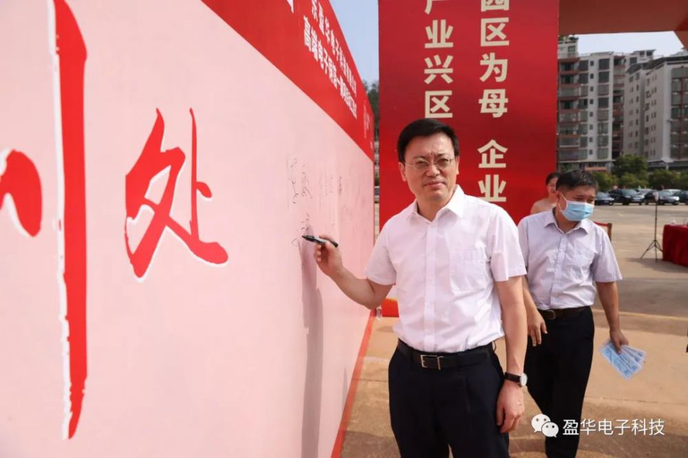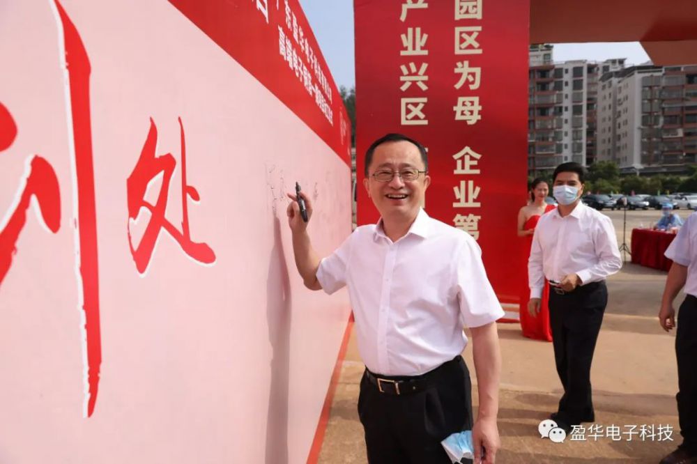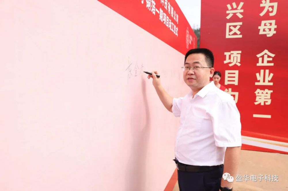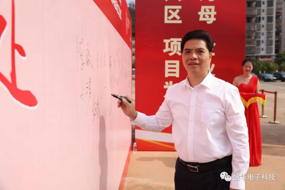 梅州市委常委、副市長、梅江區委書記陳金鑾代表市委市政府致辭,向廣東盈華電子科技項目動工表示熱烈的祝賀,要求市、區各級各部門樹立“產業興市、制造強市”的鮮明向導,為制造業擔當,不斷增強梅州蘇區振興發展的內生動力,積極打造懂企業的政府,主動對接項目和企業,發揚“馬上就辦,真抓實干”的作風,積極協調解決項目過程中遇到的難點堵點,推動項目早日建設、早投產、早達效。希望廣東盈華電子科技公司堅定發展信心,集中骨干力量,高標準、高質量、高效率完成項目建設,努力將項目打造成“節能工廠、清潔工廠、智慧工廠及創新工廠”的典范,實現多方互利共贏的局面。