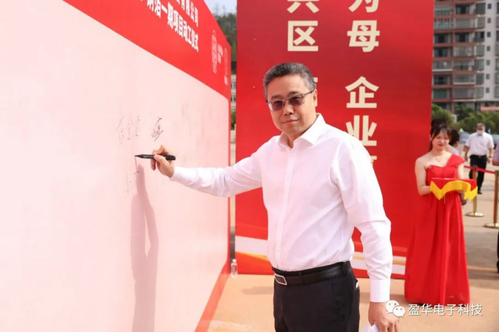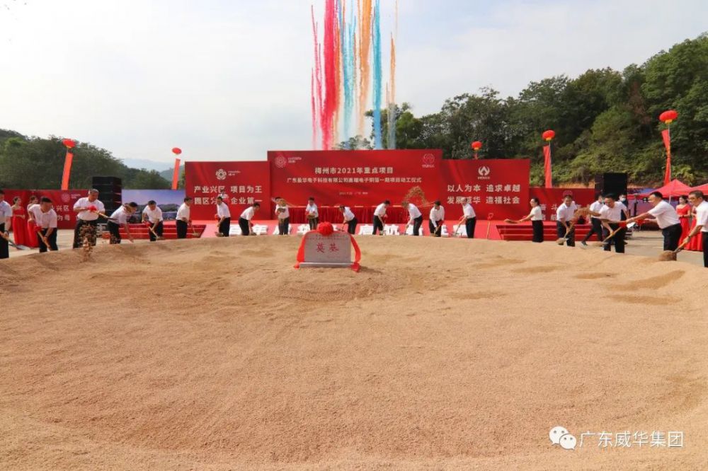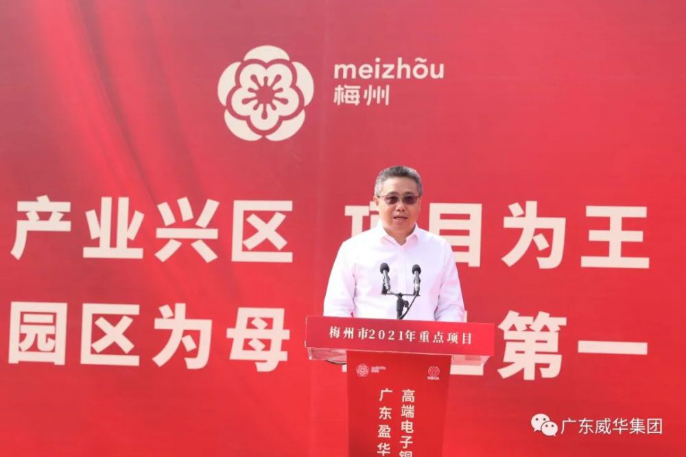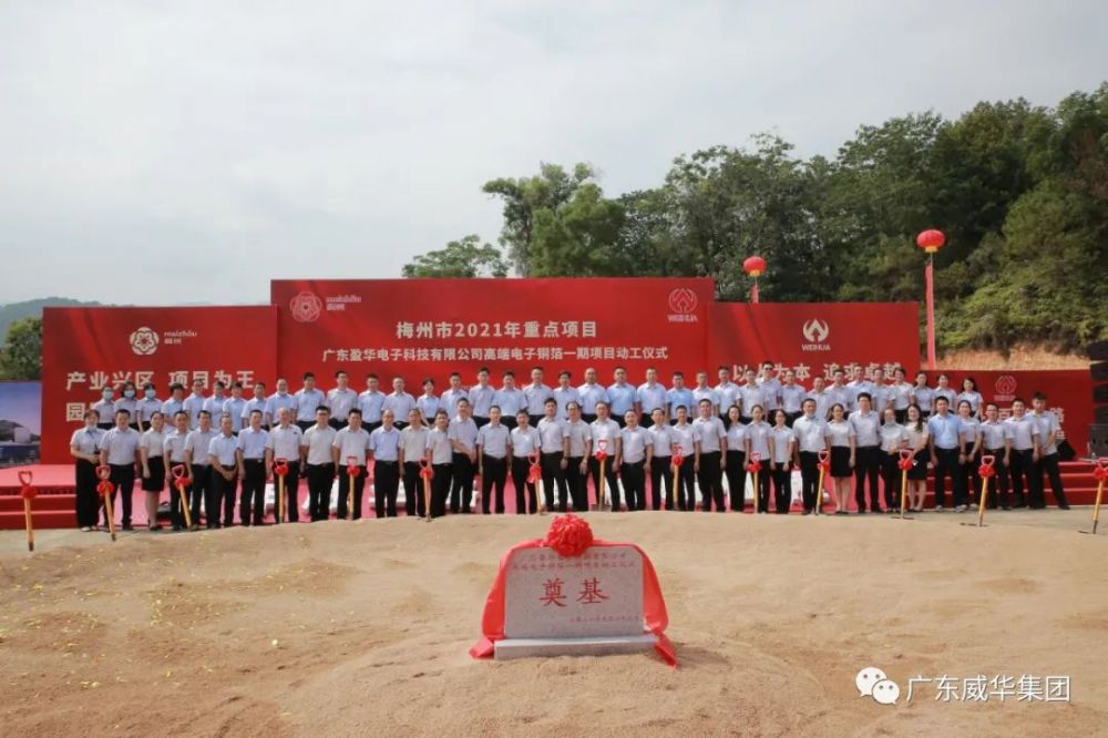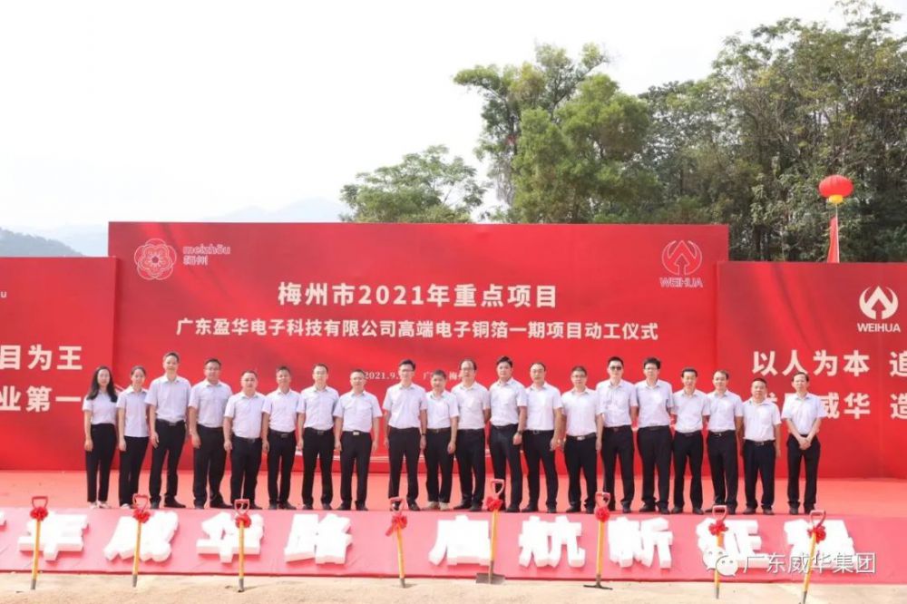 2021年9月28日上午,廣東盈華電子科技有限公司高端電子銅箔一期項目動工儀式在廣東梅州經濟開發區隆重舉行!梅江區委副書記、區長鐘秀堂主持動工儀式,市委書記、市人大主任陳敏,市委副書記、市長馬正勇,建設銀行廣東省分行副行長馬俊,市委常委、副市長、梅江區委書記陳金鑾,市人大副主任李遠青,市政協副主席馬志元,梅江區人大黨組書記曾小喜,區人大主任羅紅葆,區政協主席賴經烈等主要領導,建設銀行、中國銀行、農業銀行、交通銀行領導,博敏電子、嘉元科技、超華科技、志浩電子等電子材料行業企業嘉賓100多人出席儀式,共同見證了廣東威華集團這一具有里程碑意義的時刻。