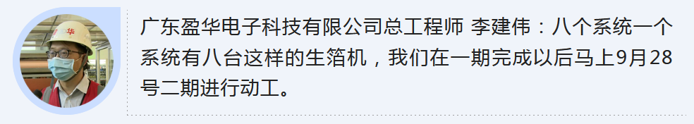 據了解,一期項目車間將在9月28日全面投產,屆時將會有8條生產線,共66臺生箔機,日產60噸,年產超兩萬噸高端銅箔。