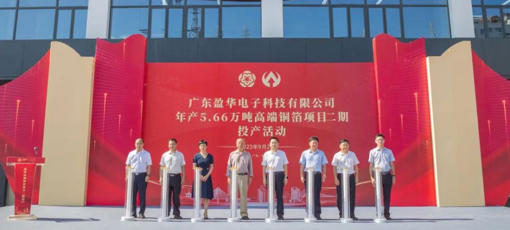 2023年9月28日上午,廣東盈華電子科技有限公司年產5.66萬噸高端銅箔項目二期投產活動在廣東梅州經濟開發區隆重舉行!