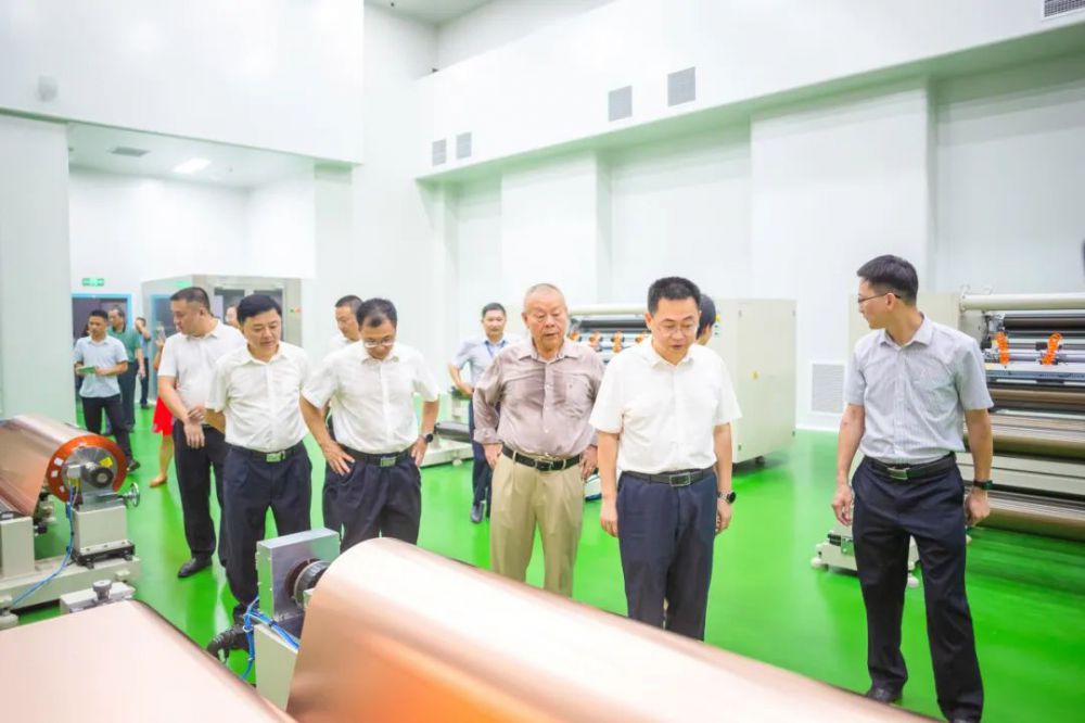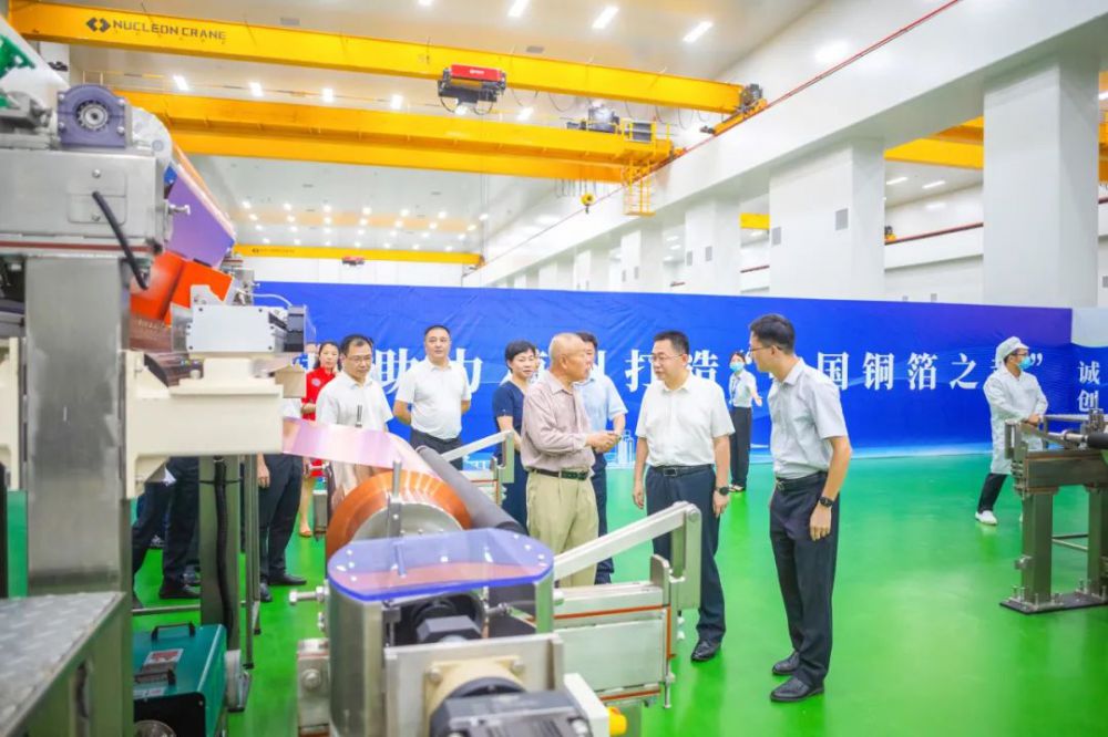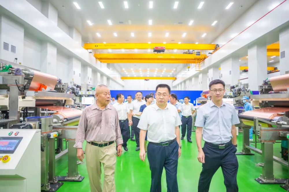 活動完畢后,梅州市委常委、副市長、梅江區委書記陳金鑾,梅江區委副書記、區長、梅州經開區管委會主任鐘秀堂等領導參觀了盈華科技高端銅箔項目二期生產車間,考察了生產運行情況,詳細了解公司高端銅箔產品生產工藝流程,詢問了公司自動化生產設備、智慧工廠建設等方面內容,對盈華科技高質高效推進項目建設工作給予了充分的肯定。